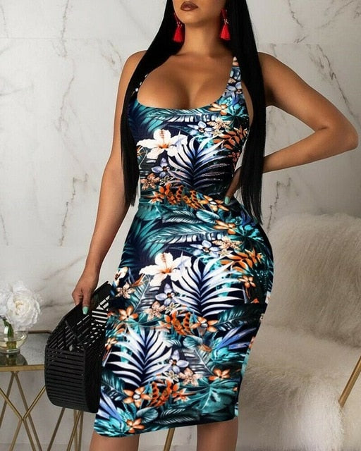 Model Number: Ladies Sexy Sleeveless Summer Printed Beach Dress